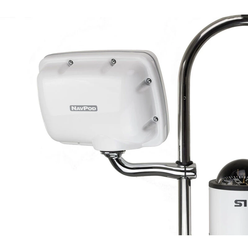 Best used for mounting of an autopilot control, sailing instrument, or small chartplotter onto an existing pedestal guard, NavPod’s RailMountĀ fits onto any 1ā or 1.25ā diameter tube. With a RailMount, the NavPodĀ can rotate 180° for easy viewing while sitting under the dodger on a rainy day. All wiring runs from the NavPod down the center of the stainless steel arm and into the pedestal guard. This application provides a clean and sturdy installation for electronics, without replacement of the pedestal guard.