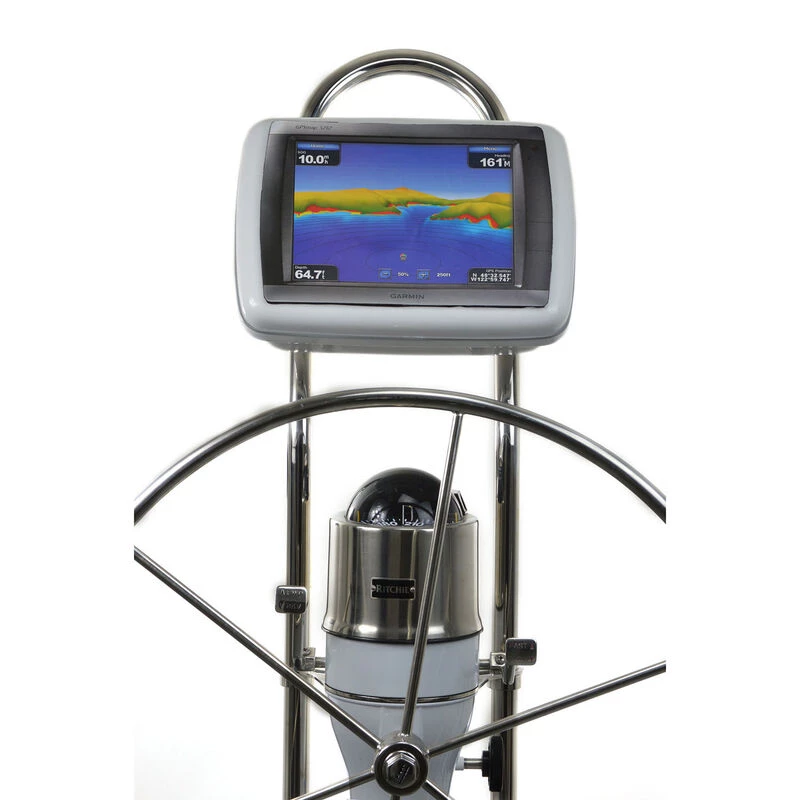 The NavPod SailPod is pre-Cut for the Garmin GPSMAP® 5012 or 5212 and it fits a 9.5″ wide guard. SailPods are the smart solution for mounting your radar or chartplotter at the helm, where you can easily operate and clearly see the fine details of the screen. NavPods have a high-gloss finish, giving you a clean mounting solution while concealing unsightly wires. Nickel-chrome-plated tamper-proof screws provide a little bling and a lot of security. Designed with a double gasket waterproof seal, NavPods protect your electronics from the harshest of wet offshore boating conditions. A SailPod is best mounted on a Single Bend AngleGuard or use a Double Bend AngleGuard to fit an InstrumentPod on the top vertical section and SailPod below on the angled section.