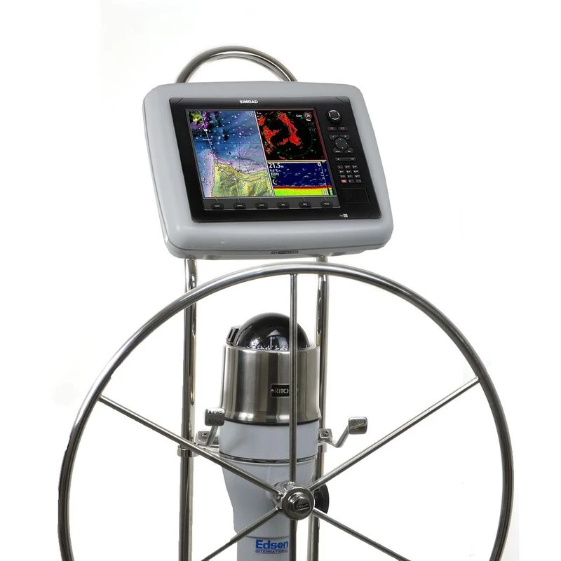 The NavPod SailPod is pre-cut for the Simrad NSE12 and B&G Zeus Z12 and it fits a 9.5″ wide guard. SailPods are the smart solution for mounting your radar or chartplotter at the helm, where you can easily operate and clearly see the fine details of the screen. NavPods have a high-gloss finish, giving you a clean mounting solution while concealing unsightly wires. Nickel-chrome-plated tamper-proof screws provide a little bling and a lot of security. Designed with a double gasket waterproof seal, NavPods protect your electronics from the harshest of wet offshore boating conditions. A SailPod is best mounted on a Single Bend AngleGuard or use a Double Bend AngleGuard to fit an InstrumentPod on the top vertical section and SailPod below on the angled section.