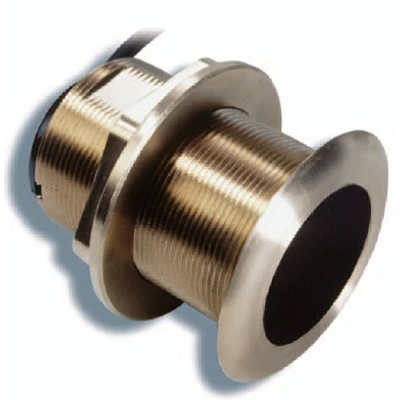 This entry-level tilted bronze transducer accommodates hull deadrise angles of 8° to 15° without a fairing.